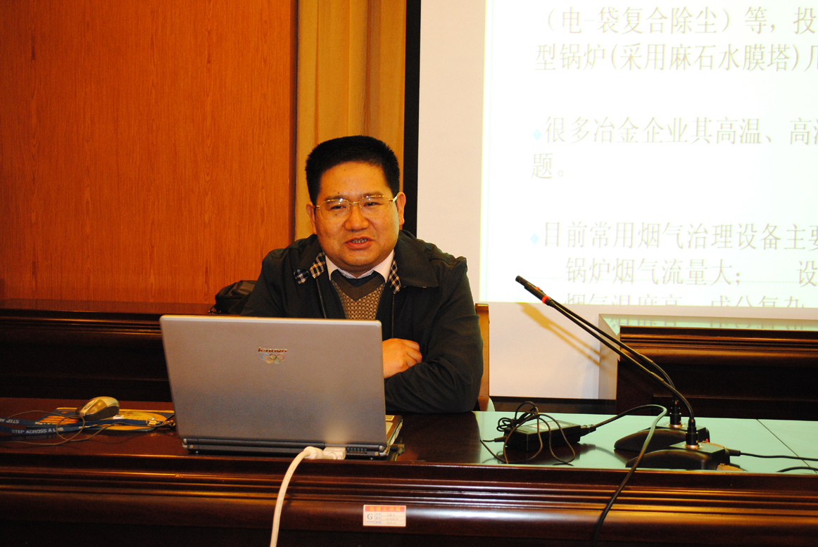 陈明功教授介绍了脱硫除尘一体化超重机工程原理和设计方案,重点阐述了超重离心场原理和利用超重离心场实现工业烟气脱硫除尘的优点,脱硫除尘一体化超重机工程实际中的应用,在设计和操作过程中存在的一些主要问题及解决措施。