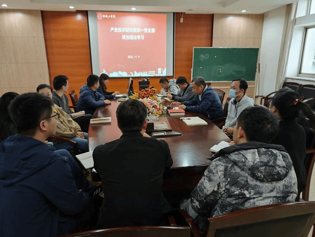 2022年11月9日下午产业技术研究院第一党支部在北校区重点实验室会议室组织开展政治理论学习,会议由第一支部书记姜瑞雨同志主持,宣传委员张文文博士带领大家集体学习。